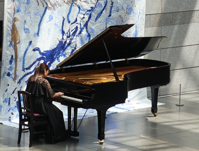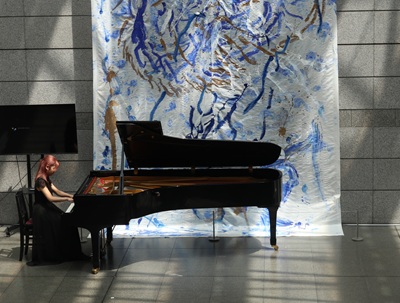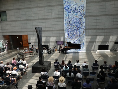 特別展「石田尚志 絵と窓の間」関連イベントとして、8月16日(土)に高松市美術館1階エントランスホールにてエントランス・ミニコンサート「石田尚志─創作を紡ぐ音─」を開催しました。