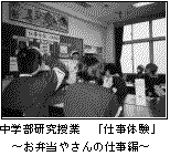 課題学習に取り組む「ことば・かず」の授業や、自作教材の『テレビ紙芝居』で男女の違いについて学習する「生活単元学習」を行った。中学部では、将来の職業生活をイメージしやすくするため、弁当ができるまでの仕事を題材にした授業を行った。八百屋のコーナーには家業として営んでいる保護者にボランティアティーチャーとして参加していただいた。高等部では、就業に向けての意識を高めるために自己PRビデオを作る授業や、進路について考える「職業科」、作業納会に向けた「総合的な学習の時間」での授業を行った。